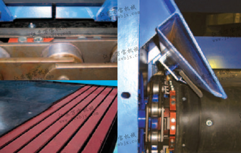 該裝置行走機(jī)構(gòu)的行走輪采用輪胎模式,無須布置固定軌道,可移動(dòng)到任意位置,使整個(gè)進(jìn)料裝置移動(dòng)沒有局限性;輸送系統(tǒng)輸送段設(shè)計(jì)為S形,在卸料處設(shè)計(jì)一水平段,用于儲(chǔ)存物料;該段托板或托輥可抗較強(qiáng)的沖擊;可通過變頻調(diào)速調(diào)節(jié)喂料量,達(dá)到穩(wěn)流目的;對(duì)于質(zhì)量較輕的物料,設(shè)計(jì)加長(zhǎng)的水平段,滿足幾輛車同時(shí)卸貨;輸送帶下T形鏈板,既能協(xié)助承受一定的重量,消化吸收物料的沖擊力,又能提高輸送帶的使用壽命;當(dāng)輸送有塵物料時(shí),整個(gè)裝置可設(shè)計(jì)為廂式,進(jìn)料口處增加橡膠簾罩,頂部可加設(shè)除塵器;當(dāng)進(jìn)料車后廂較底時(shí)該裝置尾部可加設(shè)過渡軌道,過渡軌道設(shè)計(jì)為折疊式??奢斔投喾N類型材料,其裝卸能力最大能達(dá)到600M3/小時(shí);不需專門的固定設(shè)施,不必?cái)U(kuò)大基礎(chǔ)設(shè)施。當(dāng)不進(jìn)行作業(yè)時(shí),可以遷移所有的設(shè)備,對(duì)現(xiàn)存的港口運(yùn)轉(zhuǎn)影響極小。裝置具有獨(dú)立性,如果交易結(jié)束,可以自由的遷移,甚至轉(zhuǎn)賣。強(qiáng)勁的二手市場(chǎng)有效保障其剩余價(jià)值從而減少投資風(fēng)險(xiǎn);