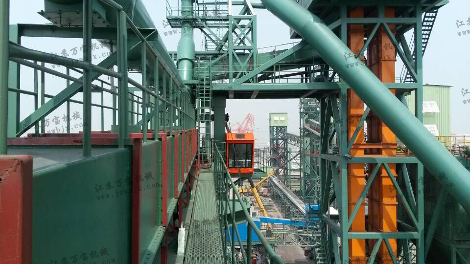 計(jì)量系統(tǒng):有2個(gè)計(jì)量倉(cāng),裝料、稱重、放料、稱重循環(huán)進(jìn)行,每個(gè)計(jì)量倉(cāng)有收塵器,通過(guò)調(diào)節(jié)流量閥和開(kāi)關(guān)閥由斜槽到裝船機(jī)裝船。